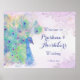 Señal de bienvenida del boda de pavo real floral Pastel lilac.