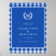Póster Bienvenida al Boda del Monograma de Gingham Azul