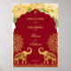 Póster Bienvenida al boda indio maroon gold elefant lotus
