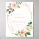 Este cartel de bienvenida para el chorro nupcial geométrico verde y dorado es perfecto para una celebración de boda rústica. El diseño cuenta con hermosas rosas pintadas a mano de color blanco, rosa y rubor y un toque de vegetación, adornando marcos geométricos dorados, inspirando belleza artística.