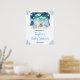 Este tierno y caprichoso signo de bienvenida a una ducha de color agua tiene una escena de invierno con adorables animales árticos como un oso polar, pingüino, gato, búho, foca y alce. En el fondo están las luces del norte, las montañas nevadas y los árboles. El texto combina guiones manuscritos y sans serif para un estilo elegante y moderno. El descenso de los copos de nieve y los bonitos arreglos florales azules dan un aire invernal. Ideal para el invierno y para los Navidades con duchas para bebés.
