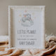 Este chica elefante pequeño poster de bienvenida con una ducha de cacahuete es perfecto para una simple ducha de bebé. El moderno diseño cuenta con un moderno y bonito animal acuático de safari zoo durmiendo en una suave nube con estrellas amarillas brillantes. Personalizar el cartel con el nombre de la futura madre.