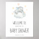 Este pequeño elefante que duerme es poster de bienvenida para una ducha de bebé, es perfecto para una simple ducha de bebé. El moderno diseño cuenta con un moderno y bonito animal acuático de safari zoo durmiendo en una suave nube con estrellas amarillas brillantes. Personalizar al poster con el nombre de la futura madre y la fecha de la ducha.