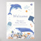 Póster Bienvenida Baby Shower de Blue Ocean Dolphin Whale