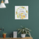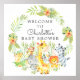 Bienvenido a tu invitado con estilo con nuestro lindo cartel de bienvenida con una ducha de bebé con un tierno elefante, jirafa, mono, cebra y león enmarcado con hojas de selva y flores de hibisco.