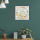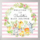 Bienvenido a tu invitado con estilo con nuestro lindo cartel de bienvenida con una ducha de bebé con un tierno elefante, jirafa, mono, cebra y león enmarcado con hojas de selva y flores de hibisco.