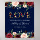 Póster Bienvenida Boda de amor Blue Burgundy Floral Gold