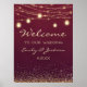 Póster Bienvenida Boda de Burgundy Gold String Lights