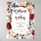 Póster Bienvenida Boda de Floral de Burgundy Fall