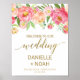 Póster Bienvenida Boda de flores de melocotón rosa y rosa