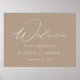 Elegante cartel de bienvenida de boda con "Bienvenida" en un guión blanco moderno de caligrafía con un fondo de taupe (o color de su elección). Personalice el poster del boda agregando sus nombres y fecha de boda. La señal de bienvenida taupe boda está diseñada para coordinarse con nuestra colección de bodas Modern Elegance y está disponible en otros colores.