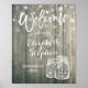 Póster Bienvenida boda Rustic Wood Mason Jar String Light