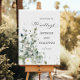 bienvenida boda firma elegante color de agua verde Fácil de usar, sólo editar los nombres y fecha! Sumérjase en un mundo romántico con nuestro exquisito signo de bienvenida Boda, adornado con la belleza etérea de la elegante vegetación y románticas rosas blancas. Esta gran entrada es una sinfonía visual, donde el hermoso guión y la exuberante vegetación se entrelazan perfectamente. La tipografía negra, símbolo de elegancia y gracia, realza el estilo de la acogida, invitando a los clientes a compartir el amor que define este día especial.