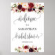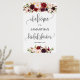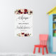 Bienvenida boho rústica floral marsala para despedida de soltera cartel 24x36 formato grande,