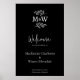 Sencilla pareja de bodas monogramas con detalles de hojas de arte de línea botánica para un hermoso y único y moderno signo de bienvenida de boda blanco y negro minimalista. Cambie el texto a personalizar.