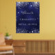 Un cartel de bienvenida para una Despedida de soltera. Un fondo azul marino con destellos elegantes de purpurina plateada falsa. El color azul es desigual. Personaliza y añade un nombre. Letras blancas.