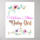 Hermoso afiche de bienvenida con decoración floral y fuente de cobre y rosa. Hará el regalo perfecto para la ducha de bebé o la decoración de la pared para el bebé.