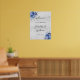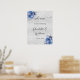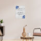 Un fondo falso plateado, decorado con chispas purpurinas falsas y flores azules. Con el texto: Bienvenido a nuestro boda. Personalice y agregue sus nombres.