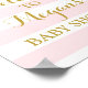 Bienvenido al poster de señas de Baby Shower con nombre personalizado con un patrón de rayas blancas y rosas claras con efecto purpurina oro, por favor tenga en cuenta que el oro es sólo efecto fotográfico.