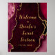 Este elegante y glamoroso cartel de bienvenida de dieciséis años presenta un fondo de mármol rojo agate con falsos toques purpurinas dorados. El texto combina el guión manuscrito y las fuentes sans serif modernas para un aspecto elegante y sofisticado. Esto será perfecto para una fiesta de otoño e invierno dulce de dieciséis años.