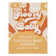 ¡Groovy Baby! Señal de bienvenida de la ducha de bebé de inspiración retro con marquesinas de estilo años 70 y fuentes y colores boho.