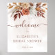 Cartel de bienvenida de boda de estilo bohemio moderno con flores de acuarela y hojas de otoño en tonos terrosos como marrón óxido, naranja quemado y terracota. La elección perfecta para bodas de otoño.
