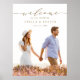 Este letrero de bienvenida de boda elegante presenta caligrafía elegante con una foto. Para una personalización más avanzada de este diseño, haga clic en el enlace Personalizar más para cambiar la fuente, el tamaño y el color.