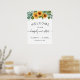 Póster de bienvenida de boda rústica o fiesta de compromiso con ramos de acuarela de flores de girasol y follaje de eucalipto. "Felices para siempre" está escrito en una mezcla de tipografía simple y una escritura de moda con florituras. Agrega tus nombres y la fecha.
