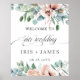 Póster Bienvenida de boda floral rosa polvoriento rústico