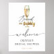 Dale la bienvenida a tus invitados a tu Bridal Shower con este hermoso cartel, que presenta una copa de champán dorada y divertida letra. Agrega el nombre de la invitada de honor, la fecha de la ducha y el texto de bienvenida personalizado usando los campos proporcionados.