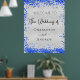 Un fondo falso plateado, decorado con confeti azul real. Con el texto: Bienvenidos al Boda de Personalice y agregue sus nombres.