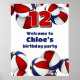 Este poster de bienvenida de la fiesta de cumpleaños con temática de baloncesto es totalmente personalizable y cuenta con baloncesto rojo, azul y blanco arreglado al azar, sobre el cual puedes personalizar tu mensaje de personalizado y la edad del niño, o personalizar el texto para que se adapte a tu evento - por katz_d_zynes