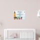 Este es un lindo cartel de poster de bienvenida con temática londinense con una torre de reloj, bus de Londres de dos pisos rojo y otros adorables acentos. Un fondo abstracto de acuarela azul con imágenes de fuegos artificiales y una rueda de la ferris en blanco. La edad en la esquina superior derecha es el personalizable. El autobús rojo tiene un cartel de "¡Feliz cumpleaños!" y se puede personalizar con el nombre del niño de cumpleaños (o chica).