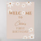 Boho chica retro marrón claro marrón floral primer cumpleaños poster de bienvenida.