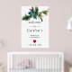 Dale la bienvenida a tus invitadas al desayuno nupcial con un festivo diseño botánico invernal. El acebo y las bayas están entrelazados en una variedad de ramas de pino. Un corazón rojo separa el texto para un toque romántico.