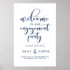Bienvenidos a nuestros invitados con esta señal de bienvenida de fiesta de compromiso con tema náutico. Cuenta con caligrafía moderna azul marino con acento de ancla. Personalice agregando nombres, fecha y mensaje de agradecimiento. Este diseño es perfecto para compromisos de verano y náuticos.