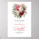 Póster Bienvenida de lluvia de boda floral rosa Borgoña d
