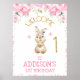 Póster Bienvenida de primer cumpleaños de conejo con flor