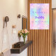 Un poster de bienvenida para una quinceanera glamurosa y glamurosa. Un fondo holográfico de moda en tonos rosa, violeta y verde menta. Decorado con confeti de color rosa. Personalice y agregue un nombre. Texto púrpura. Atrás: sin diseño