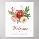 Cartel de bienvenida de boda de invierno con follaje de rama de pino de Navidad floral blanco rosa rubor terracota elegante. Todos los textos están preorganizados para que puedas personalizarlos fácil y rápidamente con tus propios datos.