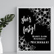 Cuarenta Rótulo vertical blanco y negro de cumpleaños: Celebra cuarenta maravillosos años con este elegante cartel vertical de cumpleaños con un atrevido fondo negro. En las esquinas superior derecha e inferior izquierda se han colocado flores blandas de color blanco, añadiendo un toque botánico elegante al acondicionamiento. El diseño utiliza una mezcla de tipos de letra serif y script clásicos en blanco para un aspecto limpio y elegante. Personalice el texto con el nombre y la edad del honorario para que sea perfecto para su celebración. Personalizable completo, puede cambiar los estilos de fuente, los colores e incluso los acentos florales para que coincidan con el tema fiesta. Una manera sofisticada y moderna de añadir encanto a tu evento de 40 años. Disponible en una versión impresa o puede comprar como archivo digital descargable para imprimir en casa o localmente.