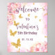 Póster Bienvenida Fiesta de Flores Rosa Doradas Mariposas