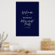 Bienvenidos a un día especial de celebración con este elegante cartel de bienvenida azul marino y blanco. Este poster presenta una tipografía moderna "Bienvenidos al Fiesta de Jubilación" con un diseño sencillo. Puede personalizar el nombre y la fecha. En mi tienda BaraBomDesign hay disponibles invitaciones y suministros para fiestas coincidentes.