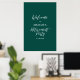 Bienvenido a sus invitados a un día especial de celebración con este elegante cartel de bienvenida en blanco y verde. Este poster presenta una tipografía moderna "Bienvenidos al Fiesta de Jubilación" con un diseño sencillo. Puede personalizar el nombre y la fecha. En mi tienda BaraBomDesign hay disponibles invitaciones y suministros para fiestas coincidentes.