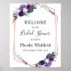 Cartel de bienvenida moderno de flores púrpura para ducha de novia. El tamaño predeterminado para esta exhibición es de 8 x 10 pulgadas, pero puede cambiarlo a un tamaño mayor.
