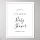 Este minimalista poster de bienvenida con ducha para bebés es perfecto para una simple ducha para bebés. El moderno diseño romántico presenta una tipografía clásica en blanco y negro, acompañada de una caligrafía rústica y elegante con un estilo de letra a mano vintage. Personalizable de cualquier color. Mantenga el diseño simple y elegante, tal como está, o lo personaliza añadiendo sus propios gráficos y obras de arte. Personalizar al poster con el nombre de la futura madre y la fecha de la ducha.