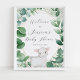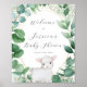 Este cartel de bienvenida para baby shower de corderito, presenta una corona de follaje de acuarela con una ilustración de un corderito bebé. Perfecto para un baby shower de género neutral, o para un niño o niña.