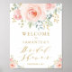 Póster Bienvenida para Boda con Flores Rosadas y Doradas