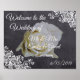 Bienvenida personalizada a la boda de Chalkboard Look con rosa desvanecida en blanco.
