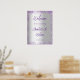 Un fondo falso plateado, decorado con chispas purpurinas falsas violetas de color lavanda. Con el texto: Bienvenido a nuestro boda. Personalice y agregue sus nombres.